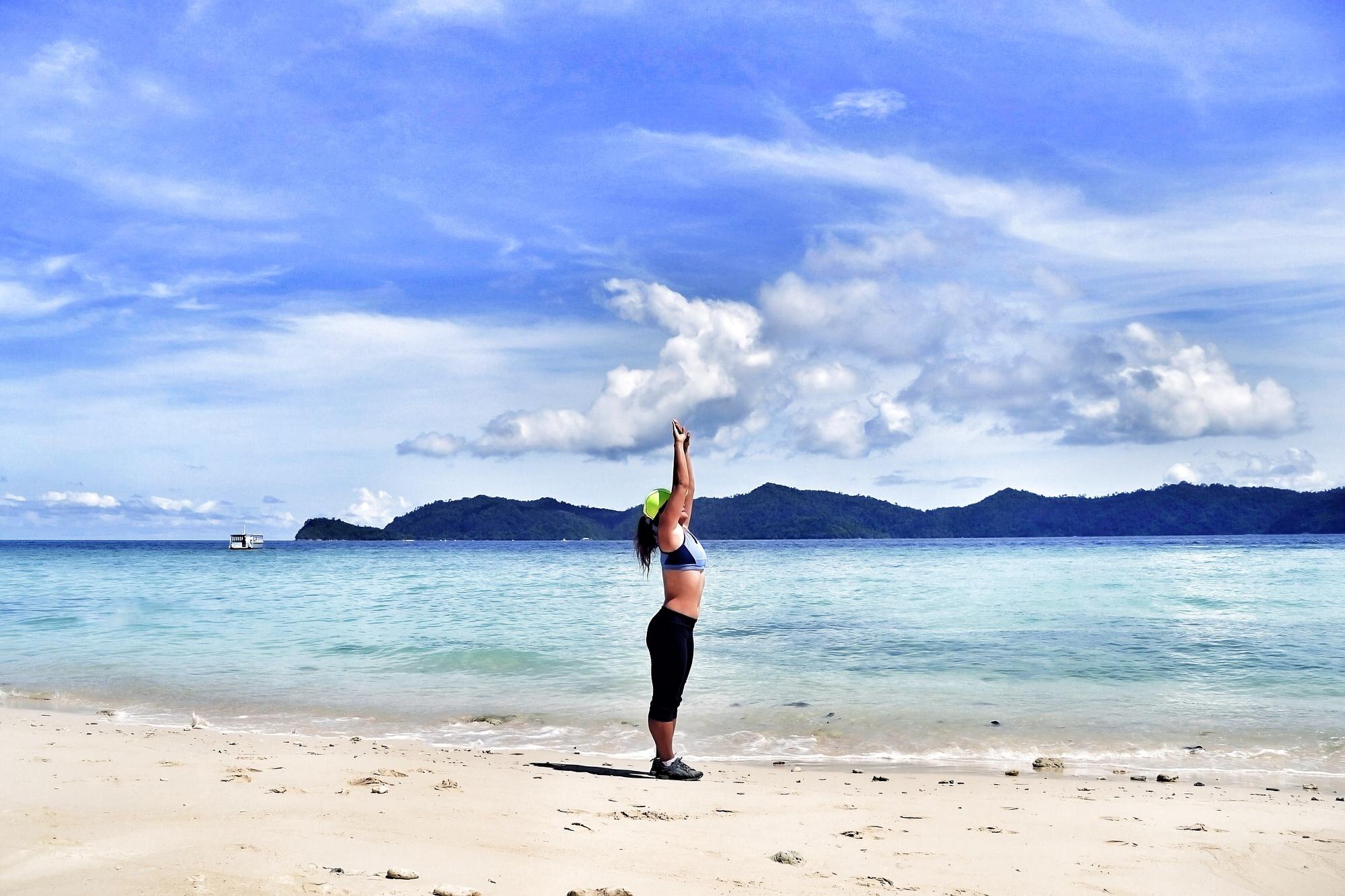 Start with a jog along the shore to engage multiple muscle groups.